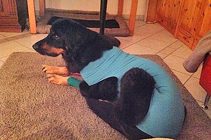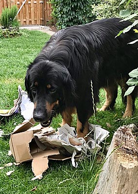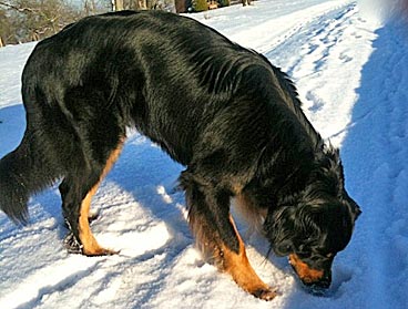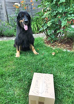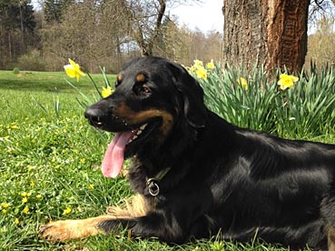Neben dem ganz seltenen Nassfutter gab es ein Geschenk (Putenhals und Pansen) auszupacken, Würstelstückchen im Garten zu suchen und eine lange Zergelrunde. |