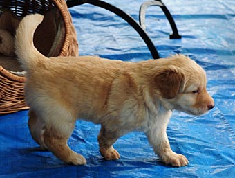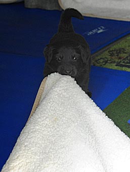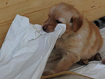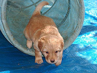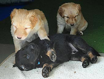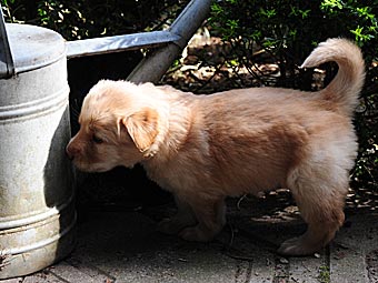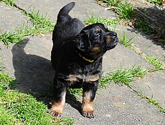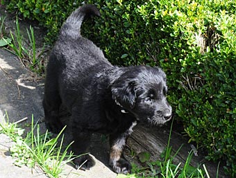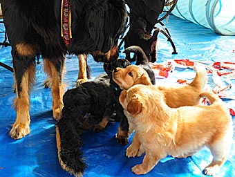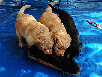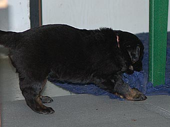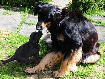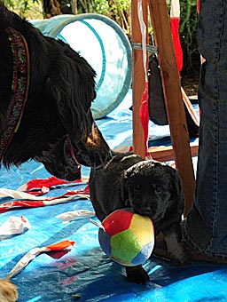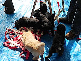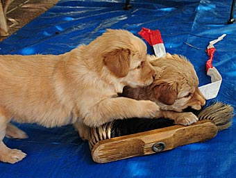 Alles Neue wird von den Welpen sofort untersucht. Heute gab es z.B. einen Bock mit Flatterbändern und einen Besen.