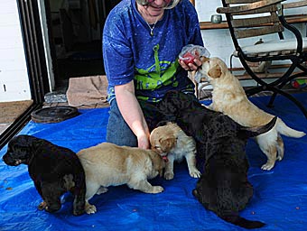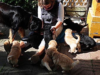 Nach jedem Ausflug versammeln sich alle Welpen wieder in der Wurfkiste,