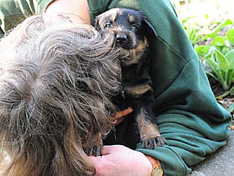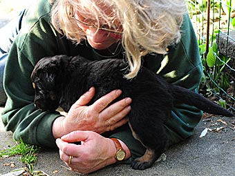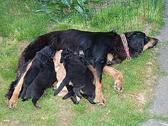 Abends liefen die Welpen zum ersten Mal bis zur Wiese und zur Belohnung gab's einen Schluck aus Mamas Milchbar.