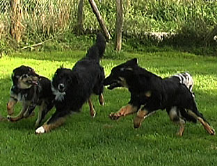 Solche Kampf- oder Streitspiele spielen nur Hunde, die sich bereits gut kennen. Die Unterschiede zwischen einem Scheinkampf und einem Ernstkampf sind sehr gering. Wenn ein Hund mit einem anderen zu heftig spielt, kann sich das Ganze plötzlich zu einem echten Kampf entwickeln. Aus diesem Grund spielen einander fremde Hunde eher Jagdspiele.