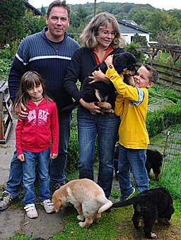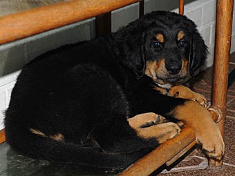 Asali geht in die Nachbargemeinde Morsbach, bleibt also ganz in unserer Nähe. Dort wird sie zusammen mit der Hovi-Hündin Alena aus Gutem Grund leben. Auch Asali wird die RZV-Welpengruppe in Gummersbach und dazu noch eine Welpenspielstunde bei einer hiesigen Hundeschule besuchen. Auf dem RZV-Platz wird sie wahrscheinlich bis zur BH ausgebildet, langfristig ist die Ausbildung zum Rettungshund in Hamm/Sieg geplant. |