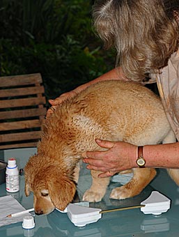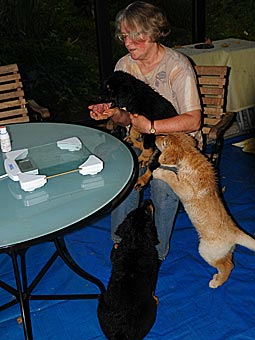 Abends war dann die letzte Wurmkur angesagt. Die Welpen konnten es gar nicht erwarten, bis sie endlich dran waren.