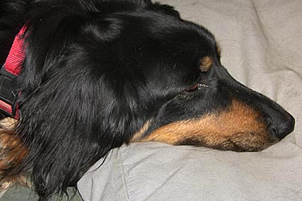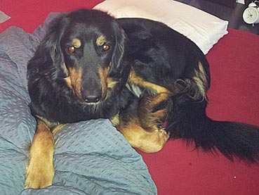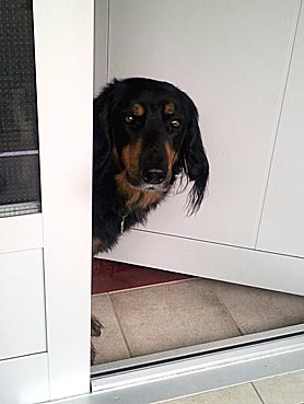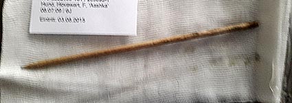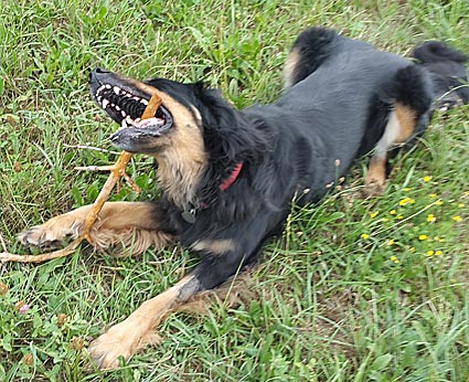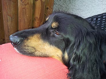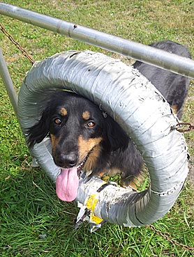 Aashka - der Fleischdieb Als Herrchen am 1. August Lammspiesse für den Grill bereit gelegt hat, hat Aashkas Lieblingskater einen Spieß aus dem Gefäss geholt, was natürlich Aaskha nicht entgangen ist. Sie hat schnell reagiert, den Spiess dem Kater abgejagt und ihn voll und ganz gefressen! Am nächsten Tag musste Herrchen Notfall massig ins Tierspital der Universitätsklink Zürich. Dort wurde der 21 cm lange Spieß, der noch komplett ganz war, endoskopisch aus ihrem Magen entfernt. Zum Glück hat Aashka alles gut überstanden und ihr geht es wieder blendend. |
