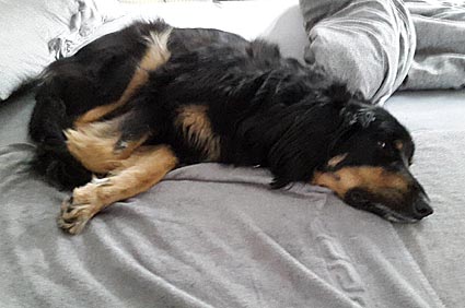 Aashka zeigt sich auch bei ihrem neuen Herrchen als toller und liebenswürdiger Hund.