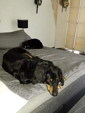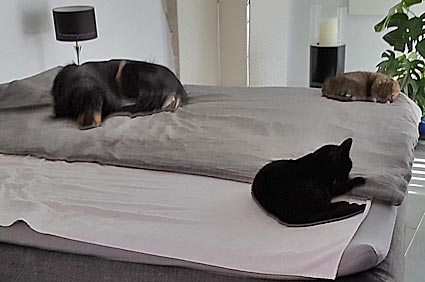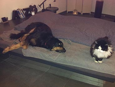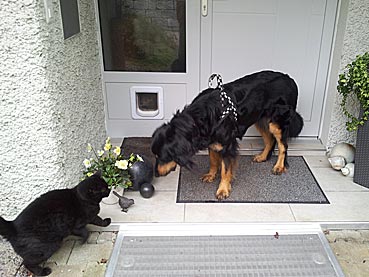 Mit den hauseigenen Katzen herrscht ebenso eine vollkommende Harmonie. |