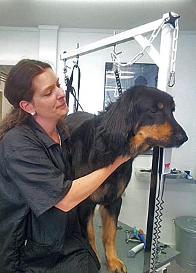Aashka scheint - und das zeigt sie ihrem Herrchen auch täglich - Aashka ist inzwischen 4 1/2 Jahre alt. Aashka beim Hunde Coiffure wo sie immer mit viel Geduld |