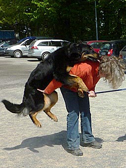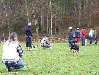 Bei einer Abrufübung hatte eine Hundeführerin keine Chance. Der Hund sollte sitzen bleiben, während die Hundeführerin sich entfernte, aber er lief ihr jedes mal nach.