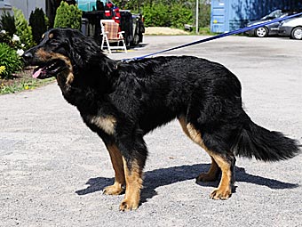 Aashka zeigte sich als freundliche Hündin mit ausgeprägter Führerbindung. Sie wurde beurteilt als eine vorzüglich entwickelte, sehr kräftige, für ihr Alter schon sehr substanzvolle Hündin mit reichhaltigem, langem Haarkleid und korrekter, auffallend buschiger, langer Rute. Ihre Marken sind korrekt. Sie hat viel Pigment und dunkelbraune Augen, ein vollständiges Scherengebiss und einen korrekten Behang. Vor- und Hinterhand sind korrekt und ihr Gangwerk ist schön fließend.