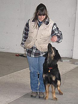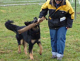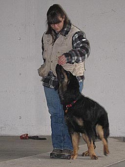 Letzte Woche lief Aashka beim Training das erste mal richtig schön "Fuß" über eine längere Strecke mit Wendungen. Das Apportierholz hält sie nun auch, wenn Frauchen mit der Hand zum Holz geht und es nicht anfasst. Sitz, Platz und Steh klappen auch schon ganz gut.