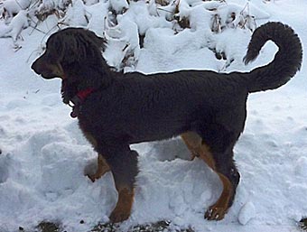 Mit 8 Monaten ist aus Aashka ein stattlicher, schöner Junghund geworden. Frauchen Andrea bekommt laufend Komplimente wegen ihrer schönen buschigen Rute.