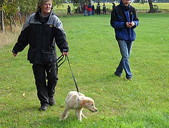 Am Samstag ging es dann mit netten Hundefreunden in die erste Fährte und Alraune suchte ein erstes Fährtenquadrat ab.