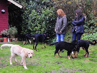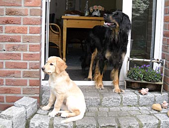 Auch Alraune, die nun Greta genannt wird, ist gut in ihrer neuen Heimat angekommen. Alraune wird nun mit der 4-jährigen Hovi-Hündin Jette (Fienchen von der Tente) zusammen leben.