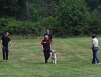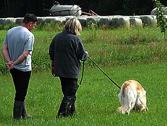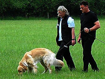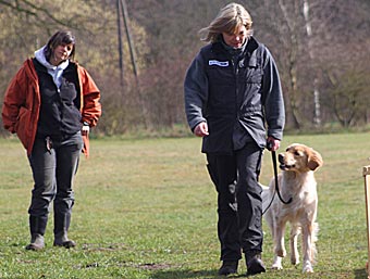 Alraune/Greta und ihr Frauchen Karin hatten eine wunderschöne Übungswoche. Beide haben viel gelernt und Karin hat einige gute Tipps mit nach Hause genommen. Am 3. Tag hatte Greta auf der Fährte mit mächtigem Wind zu kämpfen, der aus allen Richtungen kam. Aber sie hat sich wacker geschlagen! |