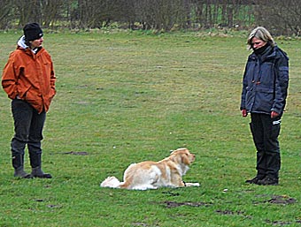 Training für das gerade "Sitz" mit Leckerchen und Leitzaun.