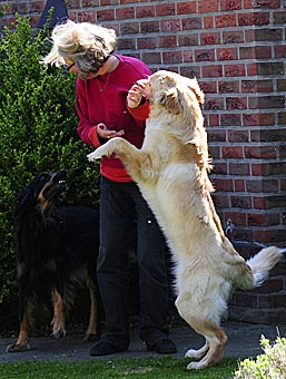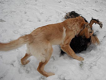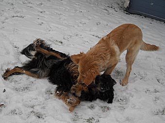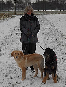 Alraune hat die ersten Schneeflocken erlebt. Gegen 5 Uhr am morgen hat es in Gütersloh heftig geschneit und Alraune entdeckte, dass man dieses weiße Zeug fressen und vor sich herschieben kann. Und die Pfoten werden auch noch nass ... Sie war begeistert!