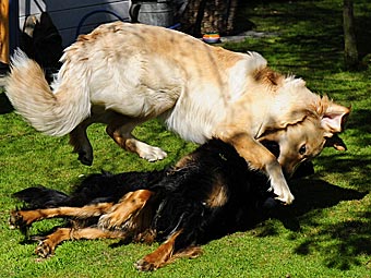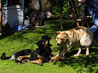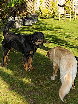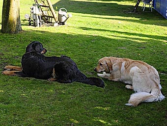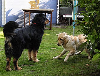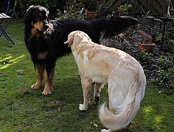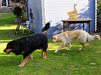 Alraune "Greta" tobte mit ihrer Gefährtin Jette (Finchen von der Tente) ausgelassen durch den schönen Garten.