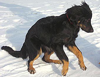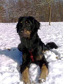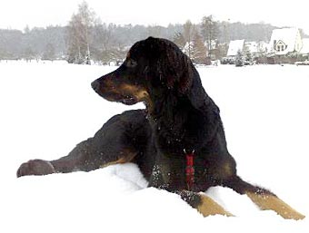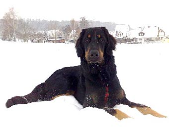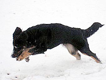 Im Alter von 6 Monaten hatte Amsel viel Spaß im Schnee.