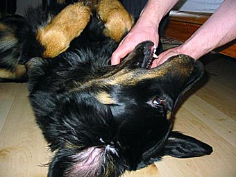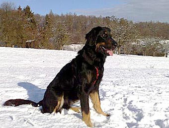 im Alter von ca. 9 1/2 Monaten wurde sie als erste Hündin unseres A-Wurfes läufig.