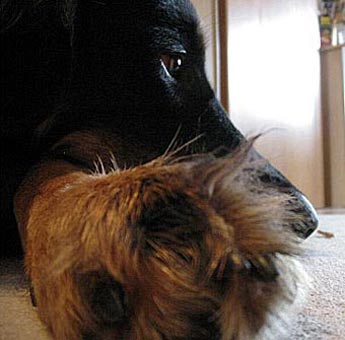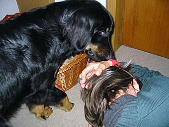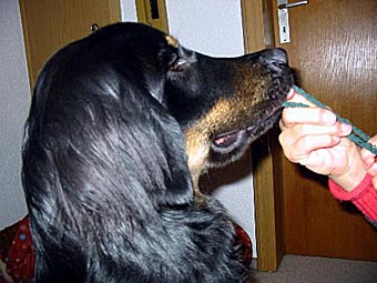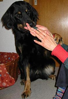 Amsel bekam gleich den freudigen Wiedererkennungsblick - genau so eine Muschel hatten wir im Welpenspielplatz.