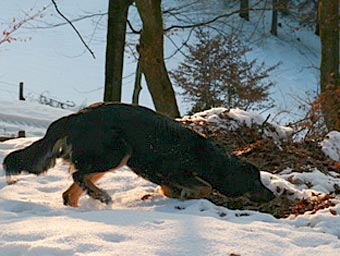 Asali beim Rettungshunde-Training Kurz vor dem Ansatz ... |