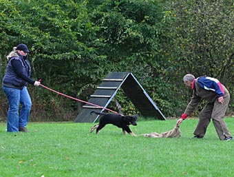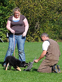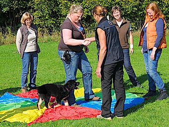 Die Welpenspielstunde begann wieder mit einem kurzen Beutespiel