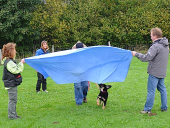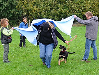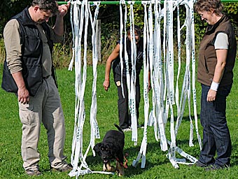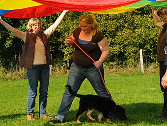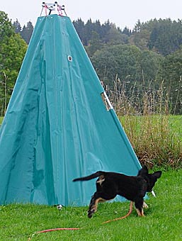 Abrufübung Frauchen Viktoria hatte sich hinter dem Zelt versteckt > |