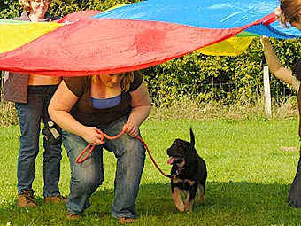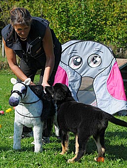 Atlas und Asali in der Welpenspielstunde des RZV Gummersbach