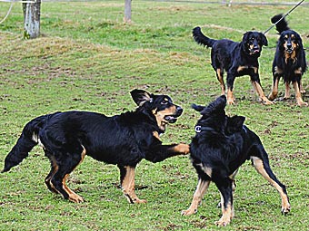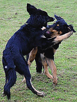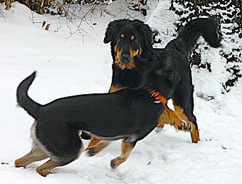 Zuerst einmal durften Atlas und Asali gemeinsam spielen, ... aber dann mischte sich Argus ein und |