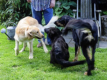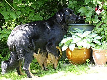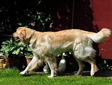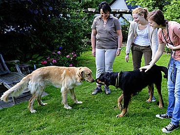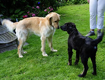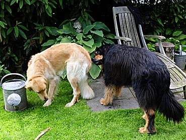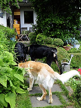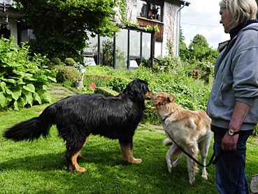 Nachdem Alraune/Greta gegangen war, kam Bella in den Garten — Argus prüfte sie genau - leider nicht läufig ... ;-))