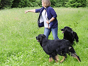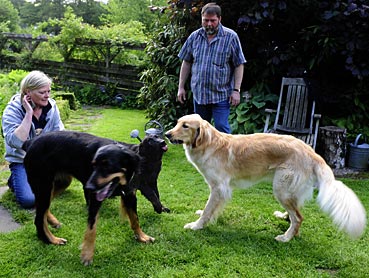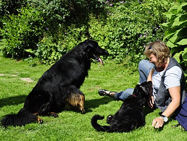 Sabine animierte Henry und Bogart zu einem Beutespiel.