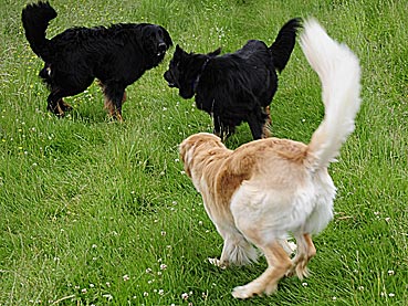 BigHenry, Bogart und Bella beim Toben auf der Wiese.
