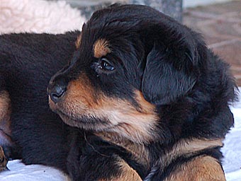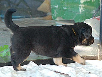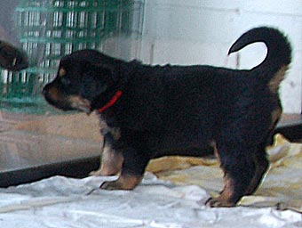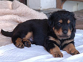 Atlas "bewacht" den Eingang zum Welpenzimmer.