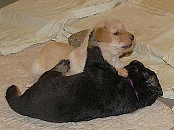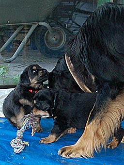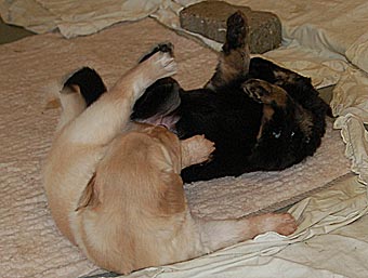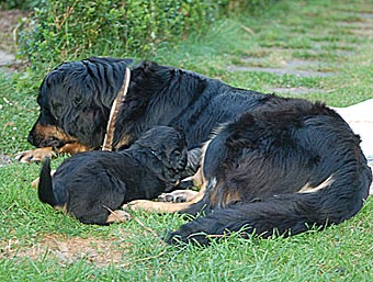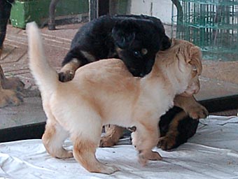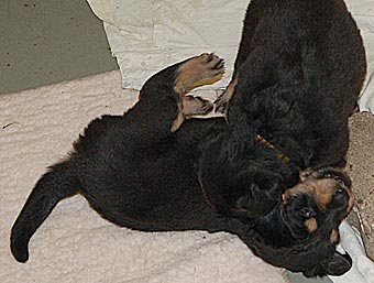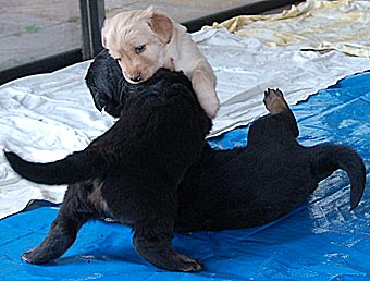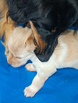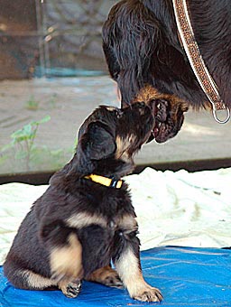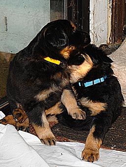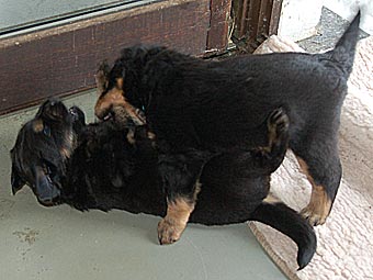 Carla zeigt jetzt bei allen Welpen immer wieder den Nackenbiss. |