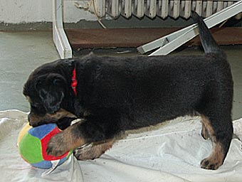 Der weiche Ball erfreut sich bei den Welpen großer Beliebtheit.