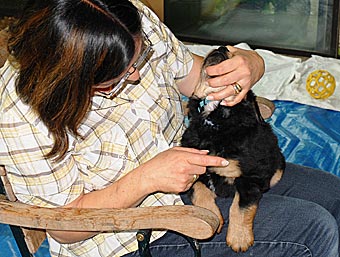 Heute war unsere Zuchtwartin zum zweiten Mal da, um den Wurf sorgfältig zu begutachten.