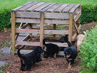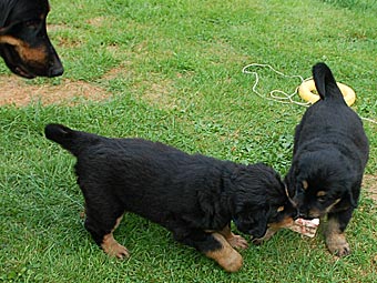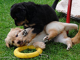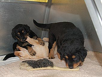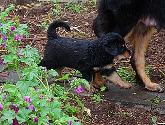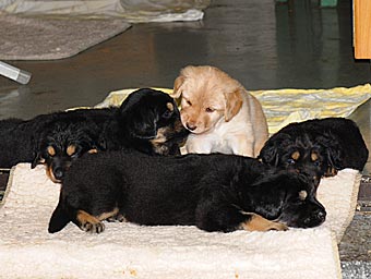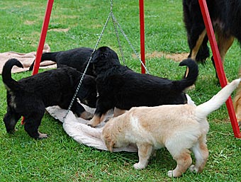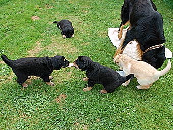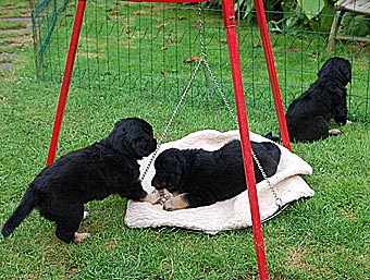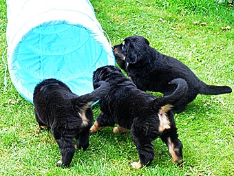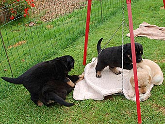 Nun sind die Welpen fast 5 Wochen alt und ihr Tatendrang, die Umwelt zu erkunden, nimmt rasant zu.