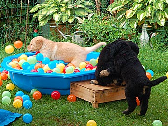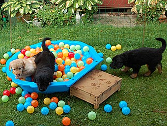 Vor allem das Bällebad war heute der Hit. Sie sind reingesprungen, abgetaucht, raus, wieder rein ...