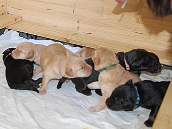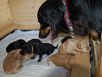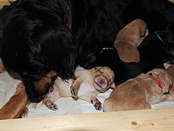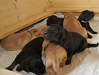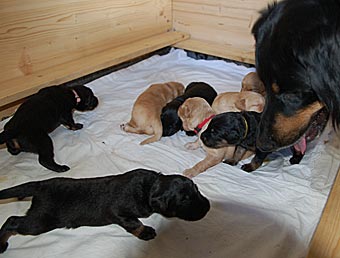 Heute war ein ganz besonderer Tag. Die Welpen haben zum allerersten mal ihre Wurfkiste verlassen.