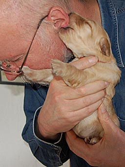 Und auch das Herrchen wird schon zärtlich angeknabbert.