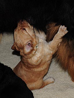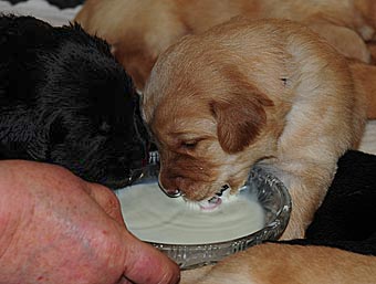 Einer der Welpen dockt sogar schon im Stehen an! — Bärchen, unser Sänger, kann heulen wie ein kleiner Wolf ;-))