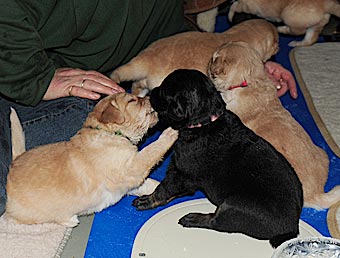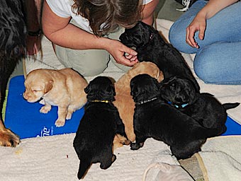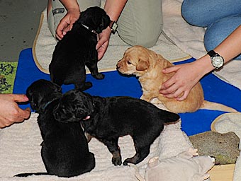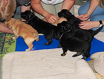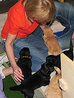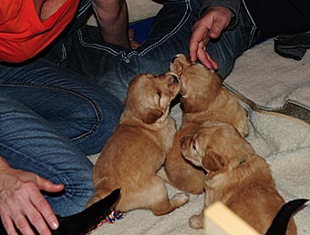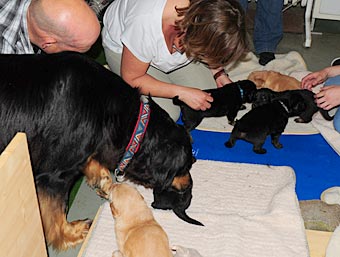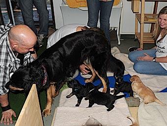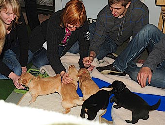 Pünktlich zum 3-Wochen-Geburtstag der Welpen kamen die ersten Welpen-Adoptiveltern