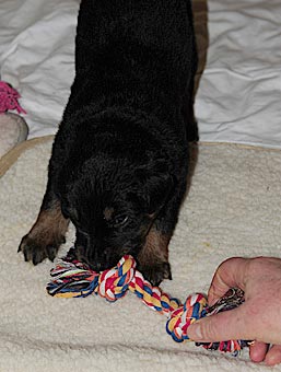 Langsam erwacht bei den Welpen der Beutetrieb |
