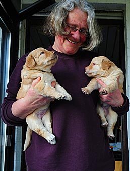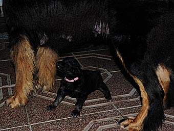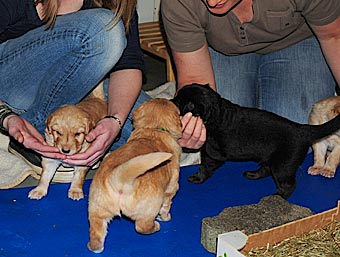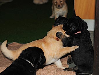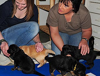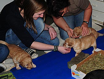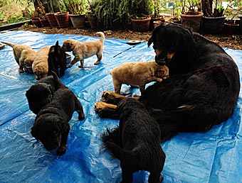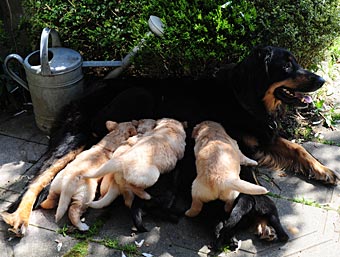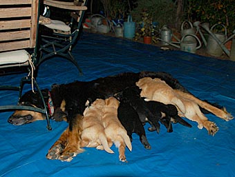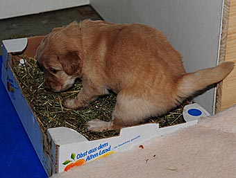 Abends wurden die Welpen zum ersten Mal im Wintergarten gesäugt. |