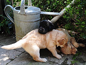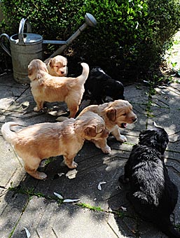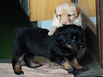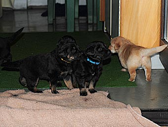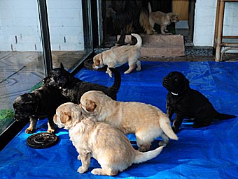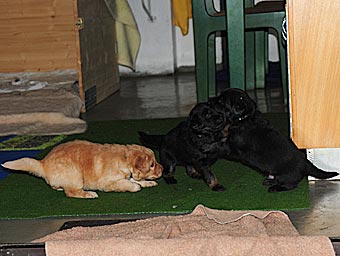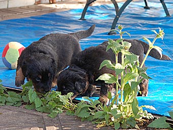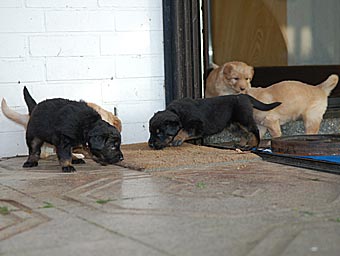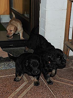 Die Welpen haben den Wintergarten bereits komplett erobert. |