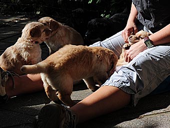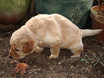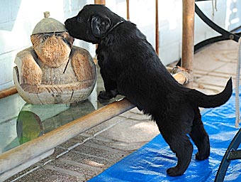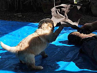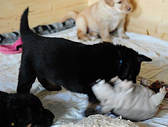 Alles Neue wird von den Welpen sofort untersucht. Heute gab es z.B. einen Bock mit Flatterbändern und einen Besen.