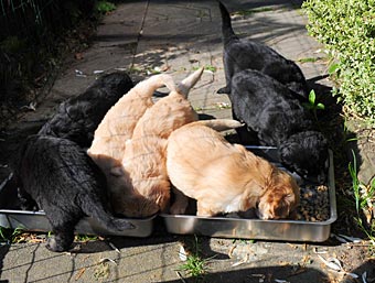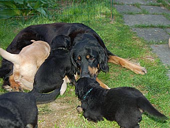 Abends liefen die Welpen zum ersten Mal bis zur Wiese und zur Belohnung gab's einen Schluck aus Mamas Milchbar.