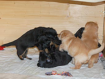 Die Welpen sind nun 4 Wochen alt und haben alle beim Gewicht kräftig zugelegt.
