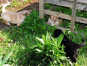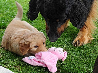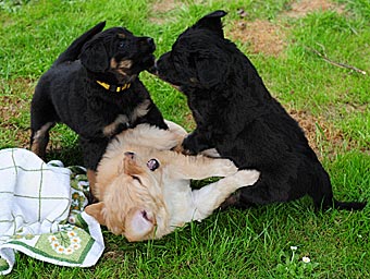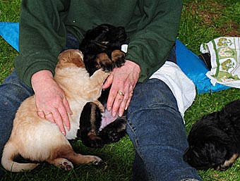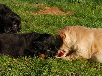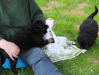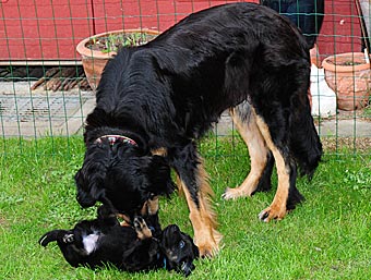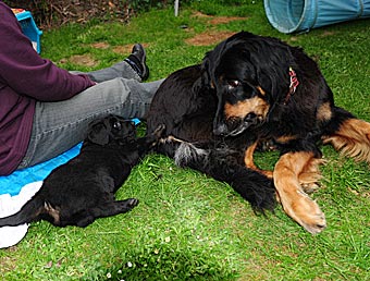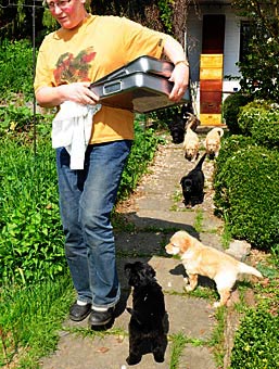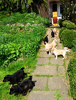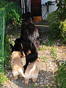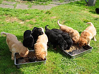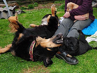 Die großen Hunde bekamen heute Pansen mit Stücken von Rinderluftröhre und Carla spendierte davon ein Luftröhrenstück ihren Kindern.