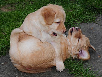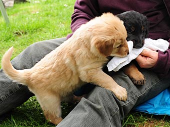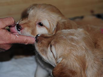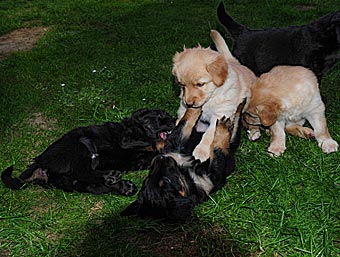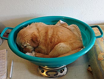 Die Welpen sind jetzt 5 Wochen alt und wiegen zwischen 4.100 und 4.400 Gramm